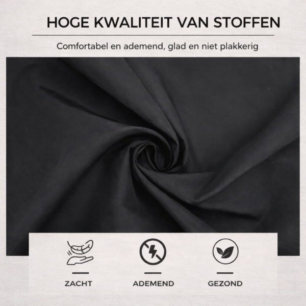 De stof is licht en ademend, zodat klanten het niet te warm krijgen tijdens de behandeling. Comfort staat centraal, ook bij langere afspraken.