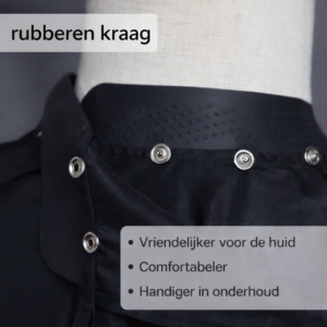 De rubberen kraag voelt zacht aan en is volledig niet-plakkerig. Hij kleeft niet aan de huid en blijft comfortabel, zelfs bij direct contact.