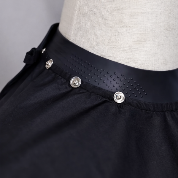 De drukknoppen bevinden zich rechtstreeks op de rubberen kraag, waardoor de mantel eenvoudig en stevig gesloten kan worden. Praktisch, snel en efficiënt in gebruik.